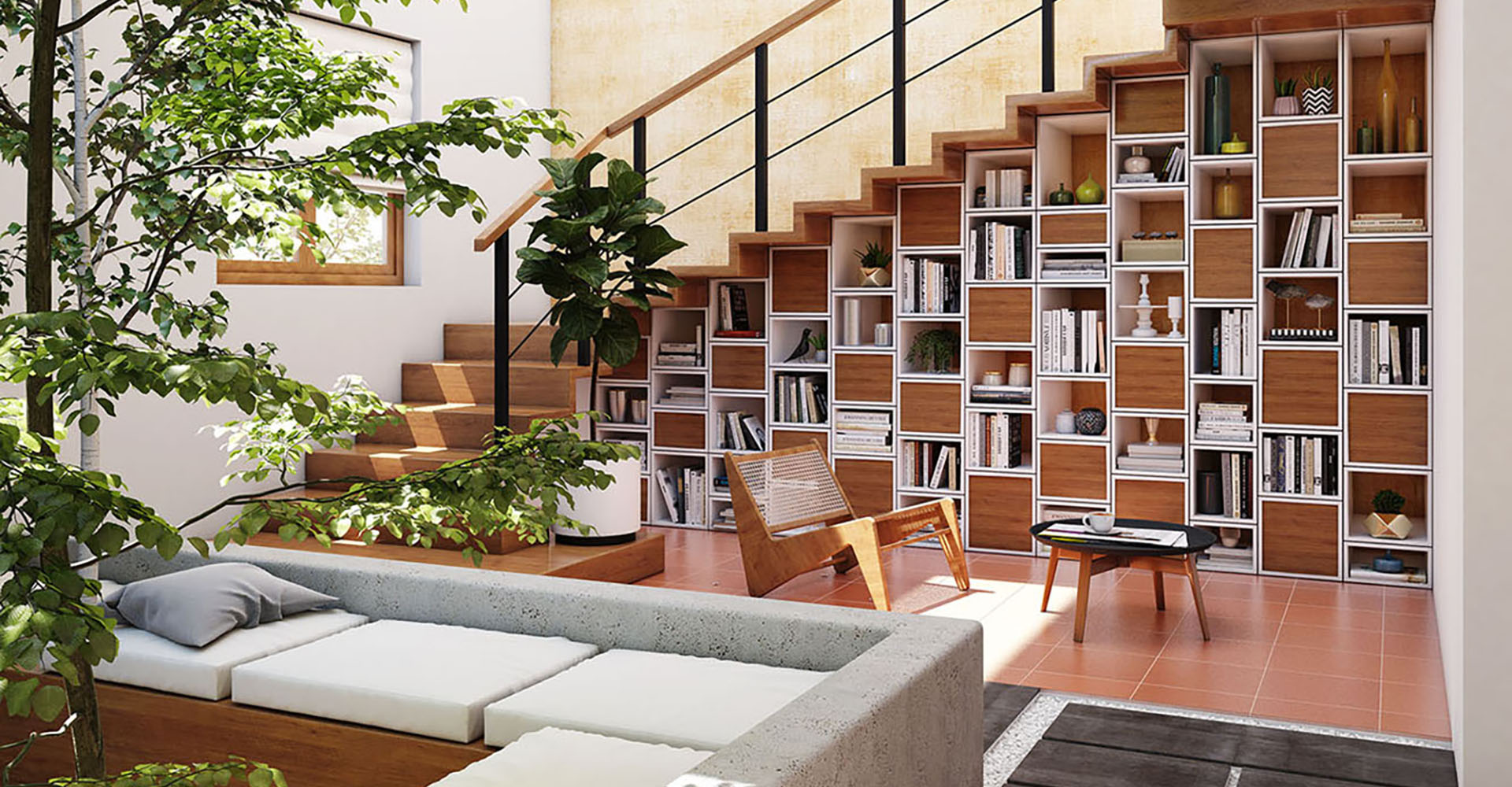 An abundance of space is experienced through double-height courtyards that encourage air circulation, and balance the temperature.