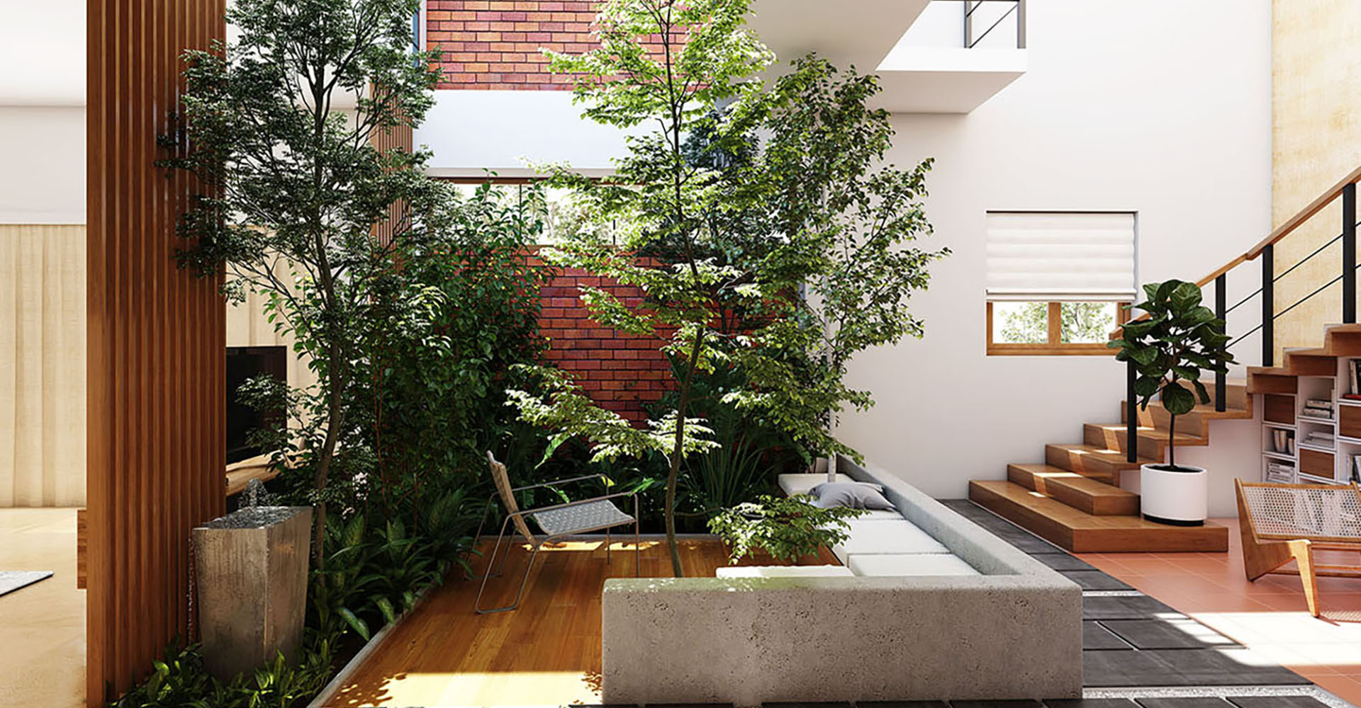 A courtyard in a home creates harmony between man and nature, at a physical and symbolic level. Daintree’s double-height courtyards serve as the focal point, and connect all spaces in the home.