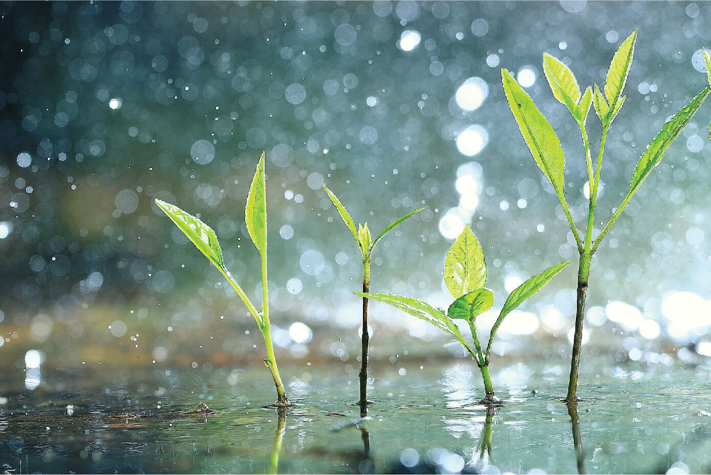 Water is recycled to create more water. Rainwater harvesting is practiced by ground recharge.